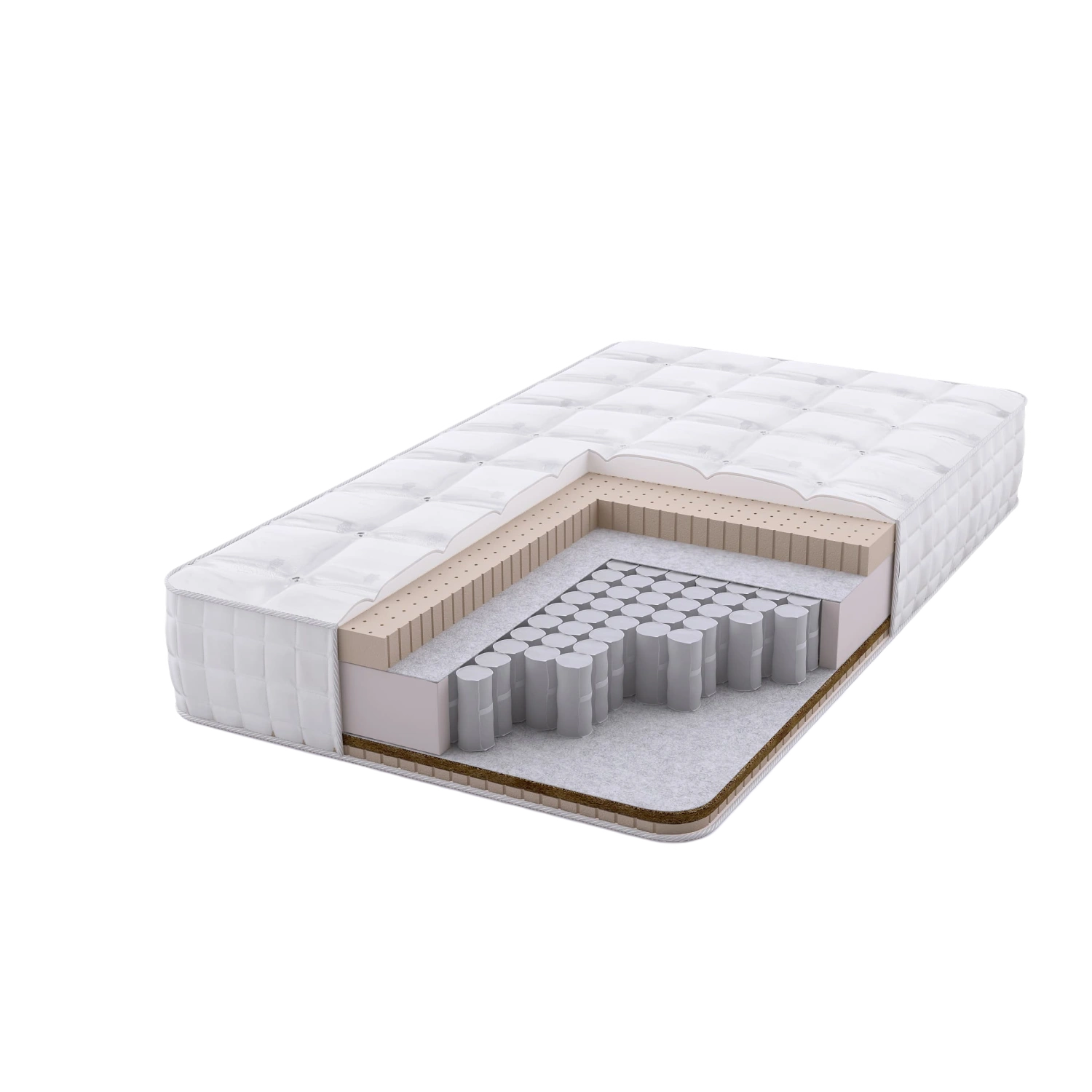 Прекрасный выбор для людей, предпочитающих разную жесткость спального места. В основе матраса – независимый пружинный блок, который помогает поддерживать позвоночник в естественном положении. Большое количество натурального латекса, с одной стороны, поспособствует расслаблению и снятию напряжения с мышц тела, а двойной слой кокосовой койры в сочетании с латексом, с другой стороны, усиливает анатомический эффект матраса. Глубокая стежка обеспечит максимально комфортное ощущение.