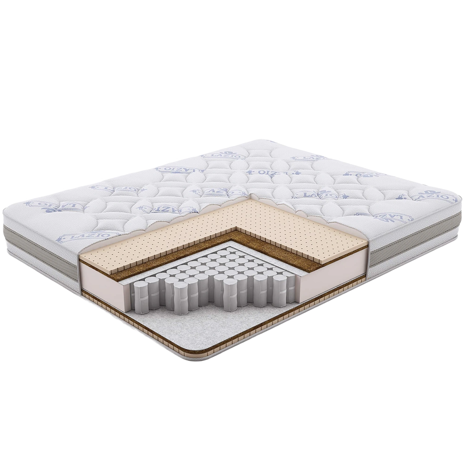 Матрас средней жесткости на основе блока независимых пружин, который равномерно распределяет нагрузку по всей поверхности. Слой натурального латекса увеличивает комфорт спального места, а кокосовая койра в сочетании с независимыми пружинами создает повышенный ортопедический эффект.